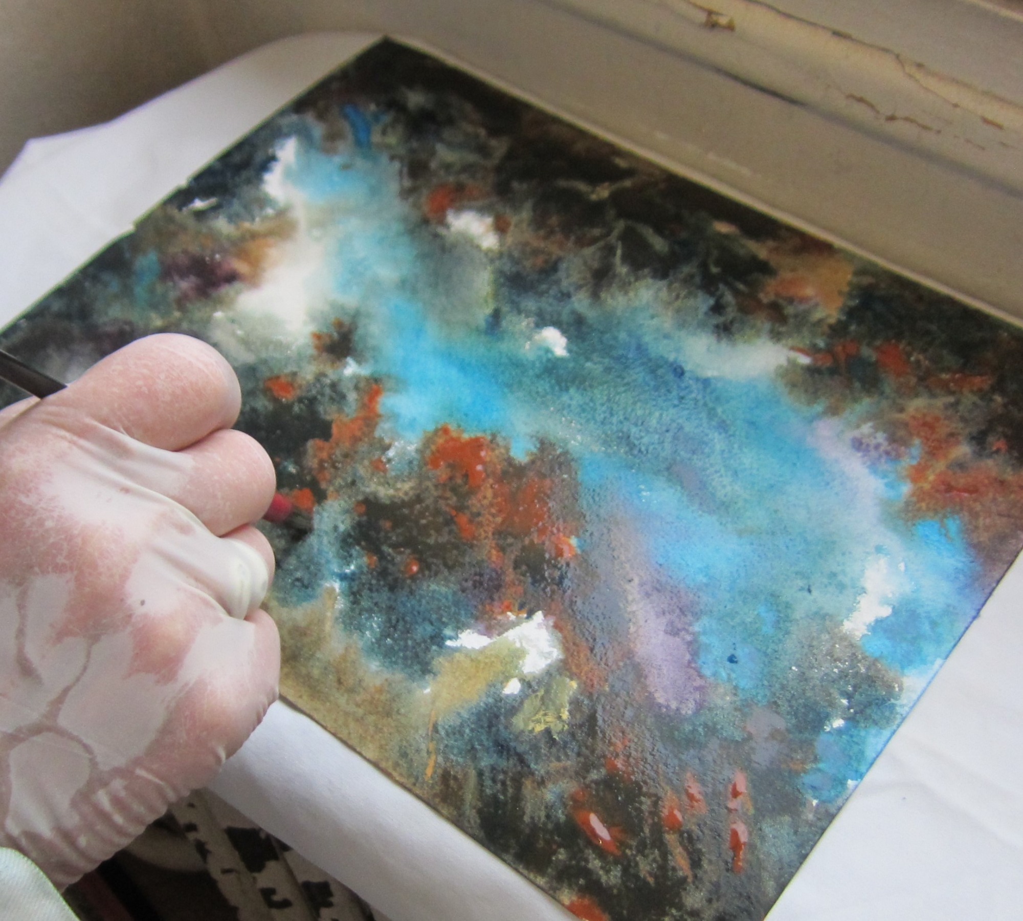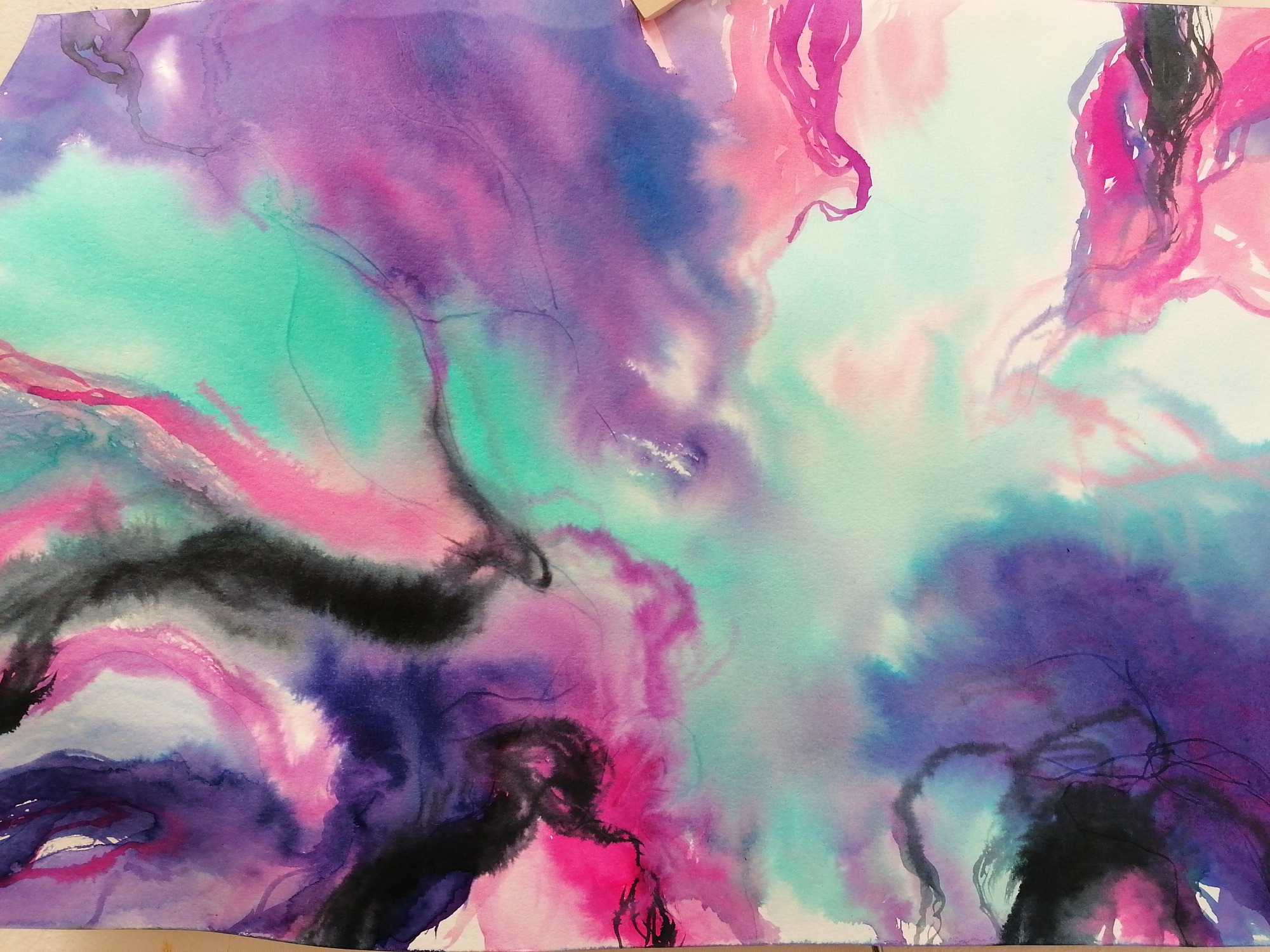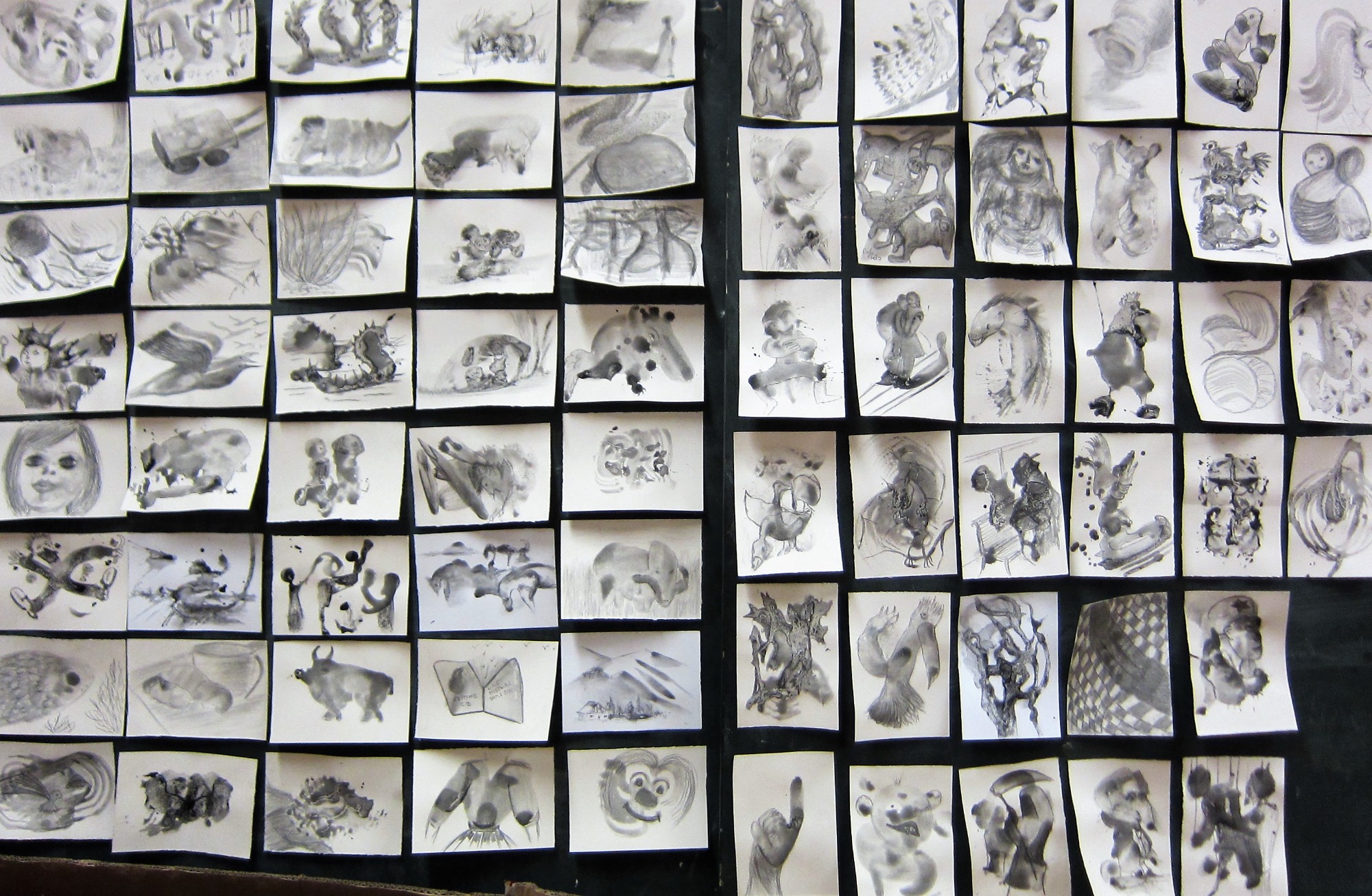 Aquarelle, Dessin, Encre, Huile, Terre, Mosaïque, Pastel sec, papier Découpé.
